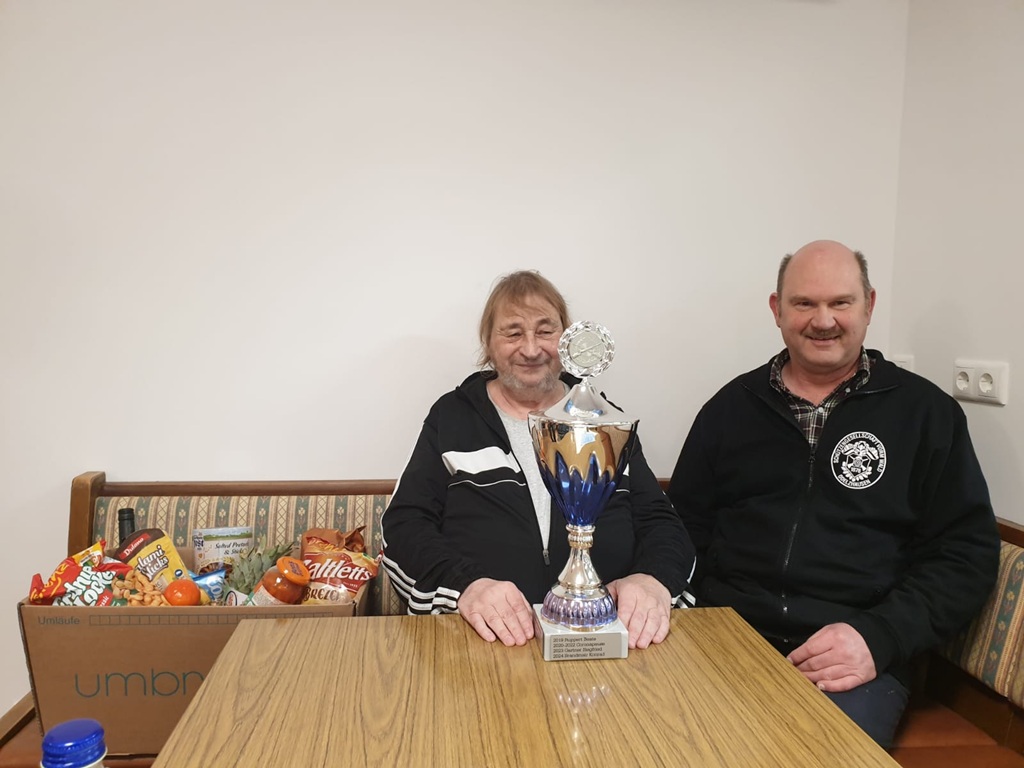 Der Schützenmeister-Pokal für Auflage, der, wie es der Name verrät, von unserem ersten Schützenmeister Joseph Kreppold spendiert wird, wurde von unserem blinden Mitglied Günther Knop mit einem 6,4 Teiler gewonnen. Über die gewonnenen Leckereien freute er sich sichtlich.